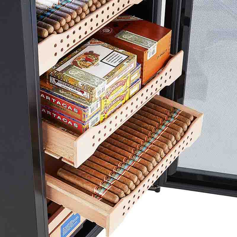 The result is a consistent and controlled environment in which your cigars can mature under ideal conditions, regardless of environmental fluctuations or the number of times the cabinet is opened.